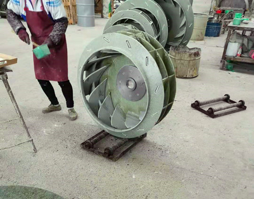 作為風機的主要轉動裝置,玻璃鋼風機葉輪使用的原材料是乙烯基樹脂與玻纖氈。主要的制作工藝為手糊工藝,葉輪的蓋板、葉片都是單獨進行制作之后再組裝起來的。