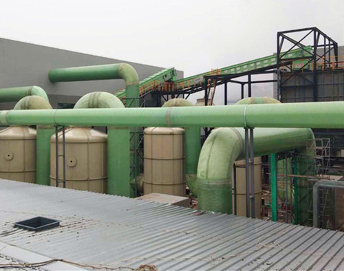 通常我們將一些直徑偏大的玻璃鋼管件類產品成為玻璃鋼管道,通常被用來輸送氣體、污水或電纜保護。不同類型的管道外觀類型和性能特點也不相同,如用來輸送氣體的管道在使用時是與玻璃鋼離心風機和廢氣塔連接在一起的,大多使用纏繞工藝進行制作。而電纜保護管道直徑相對要小一些,通常使用拉擠工藝進行制作。下面是一些玻璃鋼管道的使用圖展示。