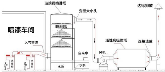 噴漆廢氣處理設備的處理方式流程如下(參照下圖):